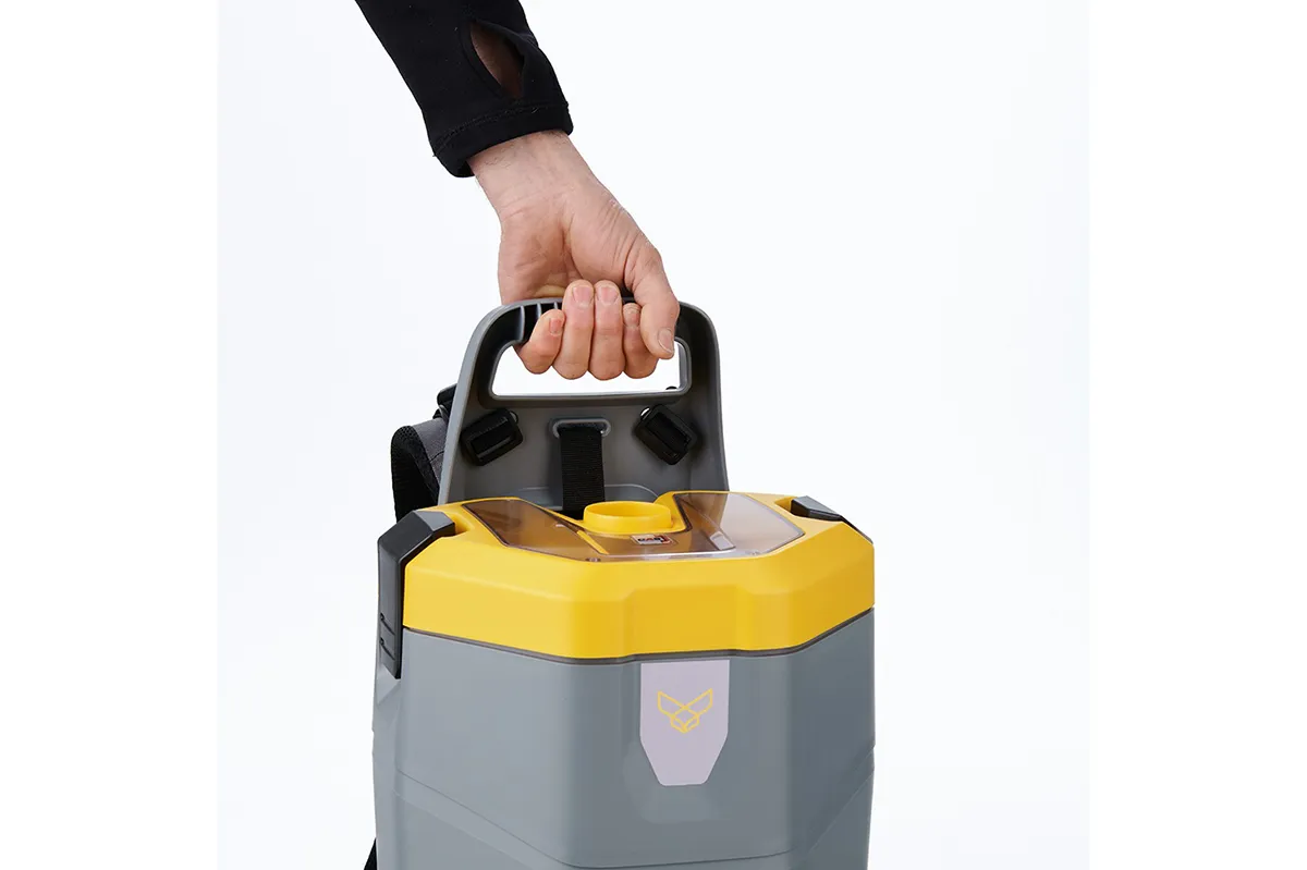 L'aspirateur dorsal Voyager séduit par son design compact, léger et ergonomique, offrant une grande liberté de mouvement et un confort optimal lors du nettoyage.
