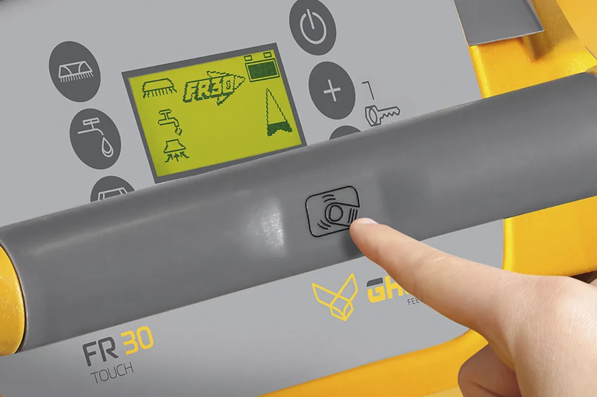 - Les performances : haute productivité, grande autonomie de travail (environ 2 heures), performances excellentes. FR 30 est aujourd'hui encore plus innovante grâce au système TOUCH à capteurs, qui garantit à l'opérateur flexibilité et contrôle maximums dans l'utilisation de la machine. Déplacer FR 30 avec un doigt n'a jamais été aussi pratique et intuitif.