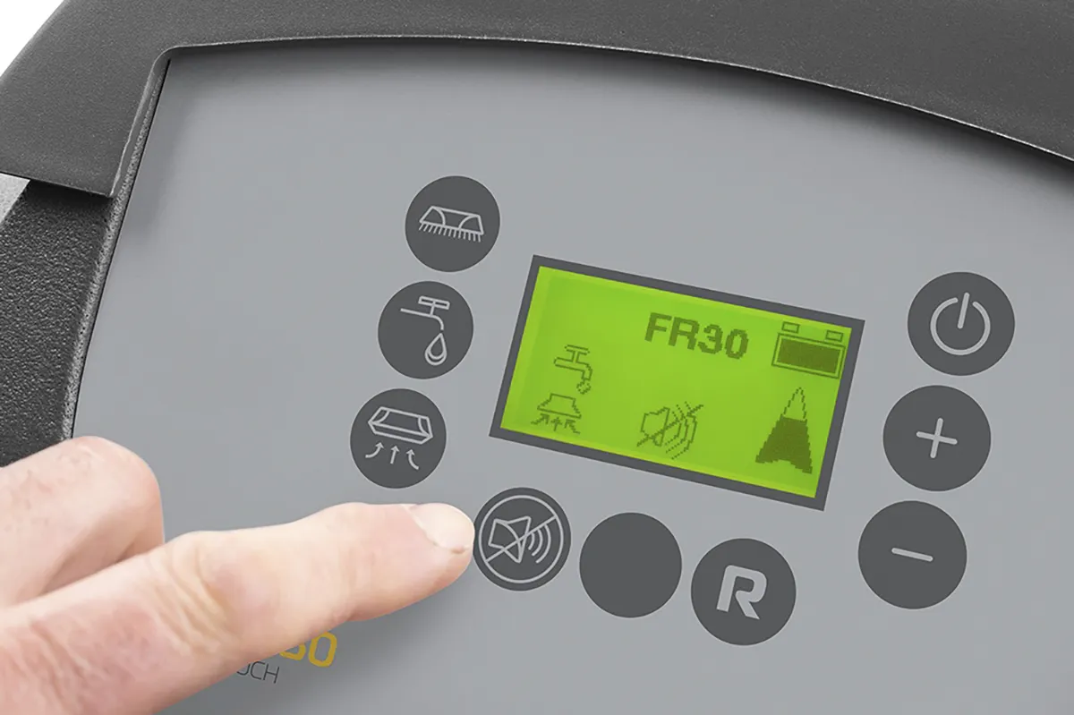 L'attention accordée par Ghibli aux questions environnementales a conduit à la création du GREEN PRO FR 30 D 45 BC TOUCH, une nouvelle version en plastique recyclé du célèbre modèle FR 30, qui a toujours été une référence importante dans son segment de marché. Autolaveuse d'une capacité de 30 litres qui garantit une maniabilité et une facilité d'utilisation maximales grâce à un système innovant de solutions intégrées. Le panneau de commande avec écran, interactif et facile à utiliser, permet de sélectionner rapidement toutes les fonctions principales de la machine. La fonction « mode silencieux » est idéale pour le nettoyage de jour et dans tous les environnements (hôpitaux, écoles, maisons de repos) où le silence est un élément essentiel et qualifiant. Le système d'essuyage, réglable et extrêmement compact (65 cm seulement), permet d’obtenir des résultats de séchage parfaits. Haute vitesse (jusqu'à 4,5 km/h), productivité élevée et grande autonomie de travail (plus de 2 heures). Le système TOUCH à capteurs garantit à l’opérateur le maximum de flexibilité et de contrôle lors de l’utilisation de la machine.