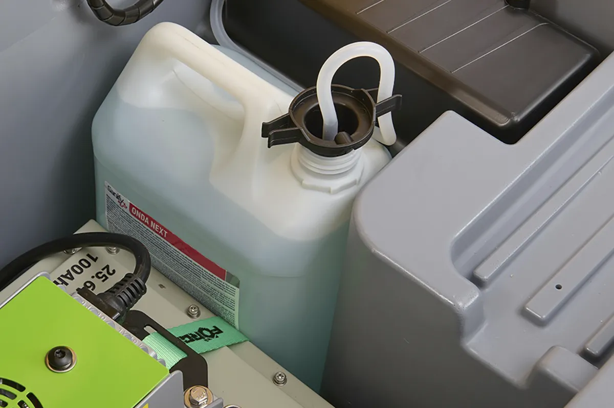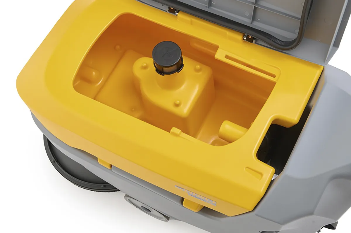 Rexa 50 D 60 CHEM est l'autolaveuse à conducteur marchant conçue pour offrir des performances supérieures et une facilité d'utilisation maximale lors du nettoyage de surfaces de taille moyenne. Avec une piste de lavage de 600 mm et une largeur d'aspiration de 750 mm, Rexa 50 D 60 atteint un rendement horaire d'environ 3050 m²/h, ce qui permet d'obtenir rapidement des résultats impeccables sur de grandes surfaces. Le puissant moteur d'aspiration à haut rendement garantit d'excellentes performances avec une faible consommation d'énergie, tandis que la poignée ergonomique et le système tactile pratique avec double capteur intégré permettent un contrôle précis de l'appareil, rendant chaque session de travail plus facile et plus confortable. Rexa 50 D 60 a été conçue pour simplifier toutes les opérations d'entretien quotidien : le réservoir de récupération est doté d'une grande ouverture pour faciliter l'inspection et le nettoyage, le bac à débris facilement amovible permet une gestion rapide des résidus et la fonction de dégagement des brosses est automatique. Parmi les caractéristiques importantes de l'appareil, citons le programme Silent Mode, idéal pour le nettoyage dans les environnements sensibles grâce à son faible niveau sonore, le système ECO, qui optimise la consommation sans compromettre l'efficacité du lavage, et la fonction Ready To Go, qui permet de démarrer et de gérer toutes les fonctions principales de manière rapide et immédiate. Le système de mélange chimique, le système de distribution et de dosage du détergent, complète l'équipement standard. Rexa 50 D 60 est disponible en trois configurations : une version de base et deux versions complètes, BC CHEM et BC Lithium CHEM, avec batteries et chargeur. La version BC offre une autonomie d'environ 3 heures, tandis que la version BC Lithium CHEM offre une durée encore plus longue, avec la possibilité de recharges rapides même pendant de courtes pauses, pour une flexibilité opérationnelle optimale.