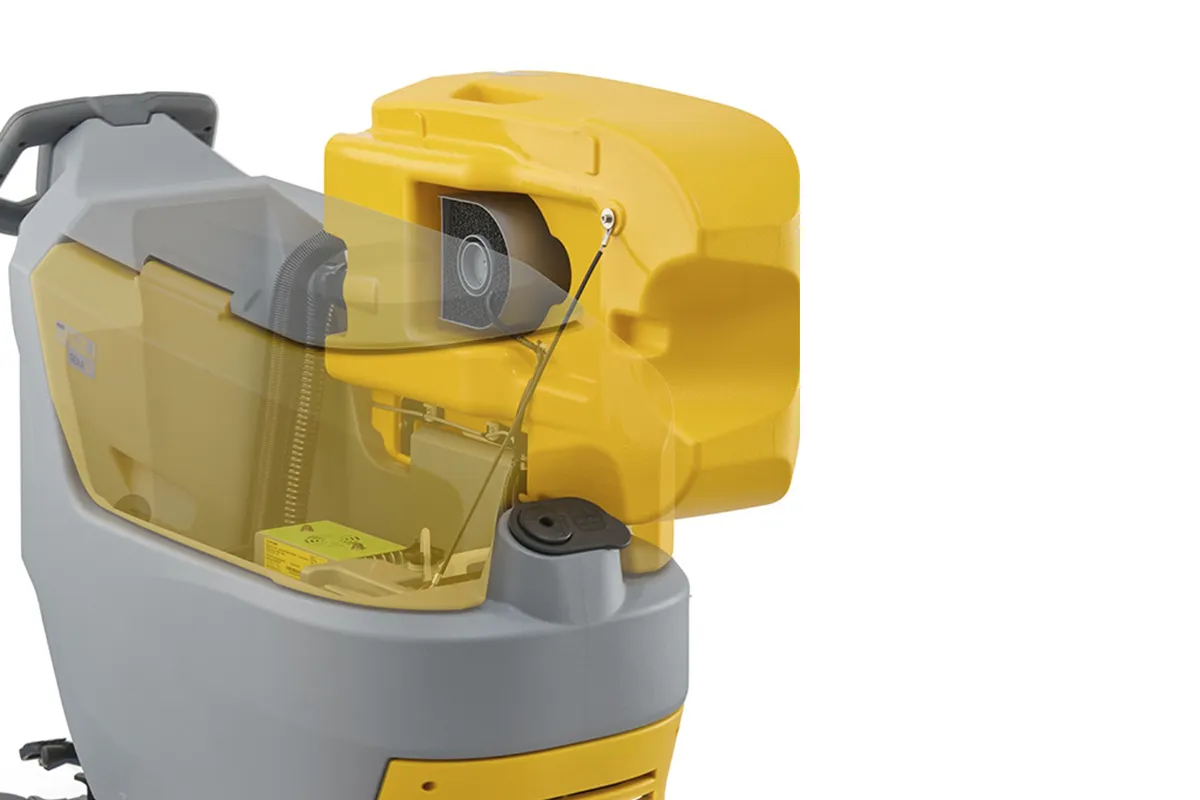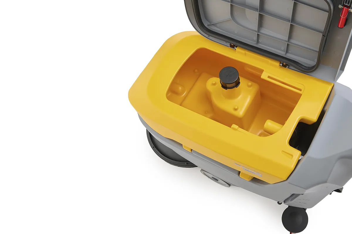 Rexa 50 SD 55 est l'autolaveuse à conducteur marchant conçue pour garantir d'excellentes performances dans les opérations de nettoyage quotidiennes dans les zones de taille moyenne. Sa capacité de 50 litres, sa piste de lavage de 530 mm et sa largeur d'aspiration de 750 mm assurent une productivité d'environ 2650 m²/h, garantissant des résultats rapides et efficaces même dans les zones les plus complexes à nettoyer. La poignée ergonomique avec système tactile à double capteur intégré permet un contrôle précis de la machine, rendant chaque session de travail plus facile et plus confortable. Rexa 50 SD (Simply Driven) est conçu pour garantir les meilleures performances de lavage et de séchage, associées à une extrême facilité de manipulation et d'utilisation. Un mélange parfait qui garantit les meilleures performances à l'usage, en rendant chaque opération de nettoyage plus facile et plus fonctionnelle. Le moteur à vide à haut rendement fournit une puissance élevée tout en réduisant la consommation pour une utilisation plus durable et plus rentable. L'entretien quotidien est facilité par le réservoir de récupération à grande ouverture, qui facilite l'inspection et le nettoyage, et par le bac à débris pratique et facilement amovible, qui permet une gestion rapide des déchets. Rexa 50 SD est la solution idéale pour ceux qui recherchent une autolaveuse compacte, efficace et facile à utiliser, qui combine des performances de nettoyage élevées avec une manipulation pratique et rapide de la machine. Disponible en trois configurations : une version de base et deux versions complètes, BC et BC PLUS, avec batteries et chargeur. La version BC offre une autonomie de plus de 2 heures, tandis que la version BC PLUS va jusqu'à 3 heures.