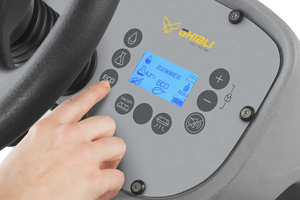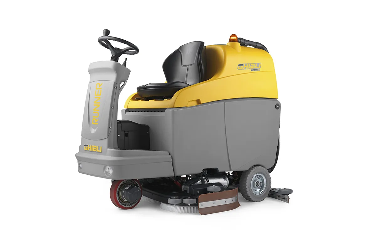 Runner est l'autolaveuse autoportée Ghibli & Wirbel pensé pour les grands espaces. Le choix nécessaire pour qui cherche puissance, fiabilité et performances de haut niveau sans renoncer au confort. La vaste piste de lavage (850 mm), associée à une productivité d'environ 5000 m²/h, garantit la solution parfaite pour le nettoyage de grandes zones.