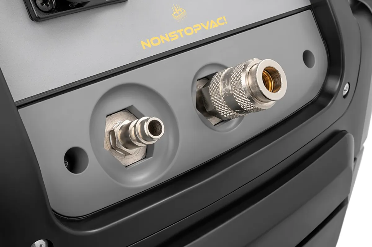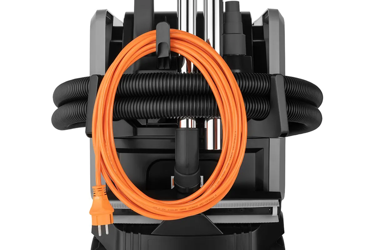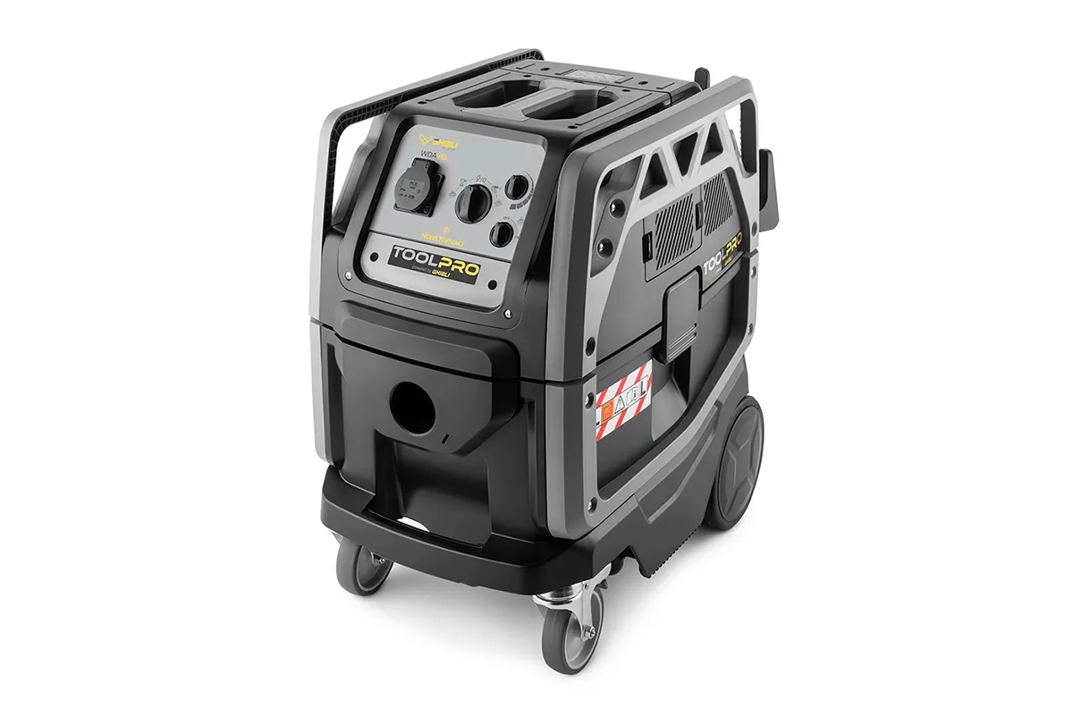 Aspirateur pour solides et liquides homologué pour les poussières classe L, grande capacité, puissant et robuste, conçu pour travailler dans des environnements caractérisés par la présence de poussières simples à risque modéré. Compact et maniable, TOOL PRO WDA 40 L est idéal pour être utilisé dans des environnements tels que les ateliers et les ateliers d’artisanat. Le système NONSTOPVAC!, grâce au nettoyage automatique du filtre principal par inversion du flux d’air, assure une aspiration constante et réduit sensiblement les temps d’arrêt de la machine, ce qui permet à l’opérateur de travailler sans interruption avec des performances d’aspiration élevées. Équipé d’une prise pour outils électriques (puissance max 2400 W) et d’un Kit COMBI pour le raccordement des accessoires pneumatiques (en option), il assure une pression de fonctionnement jusqu’à 10 bar. L’allumage de la machine peut être manuel ou automatique (commandé via l’outil connecté) et, de plus, il est possible de mettre en marche l’aspirateur directement par le tube flexible grâce au Remote Control Kit [télécommande] (en option).