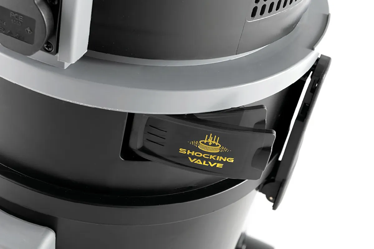 Aspirateurs secs spécifiques avec raccord outils électriques et pneumatiques (Combi). Équipé du système de filtration à trois étapes FD (Fine Dust) (filtre fleece, filtre en toile et filtre à cartouche en PTFE téflon de classe M fournis de série) pour garantir les meilleures performances de filtration et une plus grande protection du moteur. Modèle équipé du système «SHOCKING VALVE», qui permet de nettoyer le filtre de manière semi-automatique et assure une durée extrême, en évitant le colmatage, la saturation et la réduction de la capacité de filtration. Aspirateur sec doté d’un chariot à roulettes et d’un moteur nouvelle génération puissant et à haute efficacité. Grande capacité et puissance électrique installée élevée. Forte puissance d’aspiration. Filtre évacuation d’air. Châssis sur roulettes en plastique anti-choc avec porte accessoires. Interrupteur ON/OFF manuel ou automatique pour les outils électriques. Filtre nylon et filtre à cartouche HEPA (en option). Sac filtre en papier et filtre à cartouche standard. Utilisable en version aspirateur sec/humide uniquement avec les accessoires spécifiques à la demande. POWER TOOL PRO FD 50 P COMBI est disponible en version M.