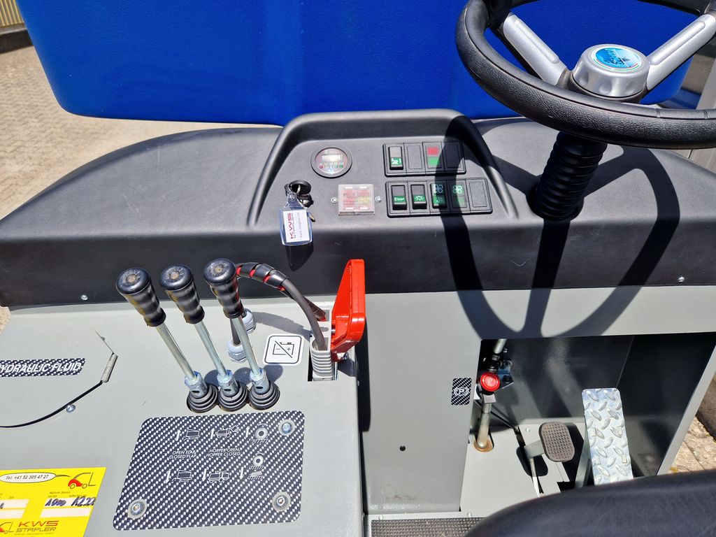 - Fiberglas-Front mit Beleuchtung; 2 Seitenbesen; Rammschutz; Flächenleistung 10'150 qm/h; Kehrgutbehälter Volumen 230l mit Hochentleerung; Fahrgeschwindigkeit 7 Km/h; Steigfähigkeit 12%; Laufleistung ca. 3:30h Inkl. 6 Monate Garantie
